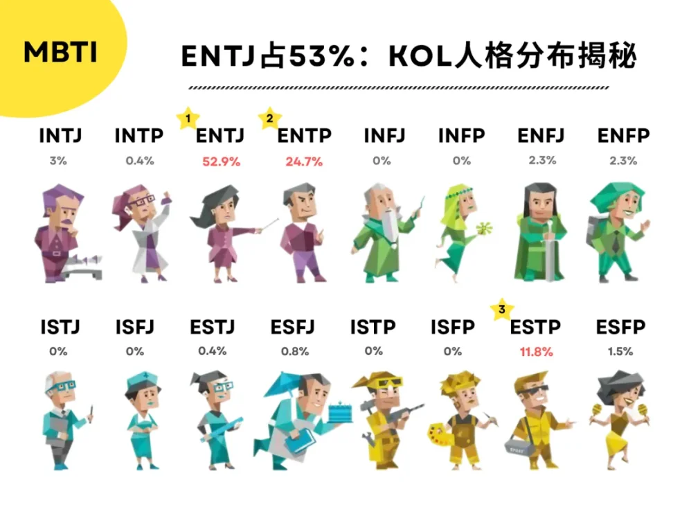 全体的に、KOL の性格構造は「外向性、行動力、リーダーシップ」という明らかな特徴を示しており、物語の推進力、話題のコントロール、市場のリーダーシップを中心とした暗号通貨市場におけるこのグループの集合的な性格傾向を反映しています。