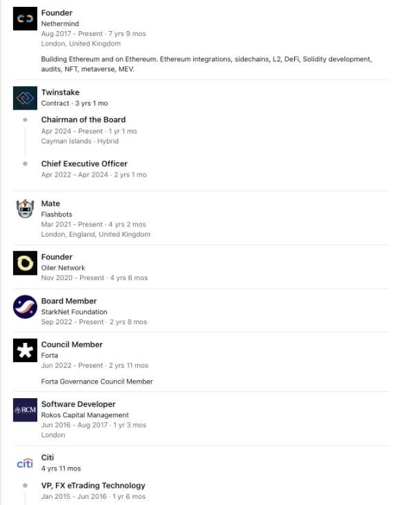 トマシュは、ネザーマインドのリーダーとして最もよく知られています。 7 年以上の努力を経て、Nethermind は現在、実行クライアント市場で Geth に次ぐ第 2 位となり、市場シェアは約 35% に達しています。同時に、Nethermindは事業領域を拡大し続け、さまざまな製品を発売し、Ethereumエコシステムに貢献するための協力と研究を積極的に行っています。 Tomasz は、Nethermind を率いてクライアント開発で大きな成功を収めているだけでなく、MEV や PBS などの最先端のトピックも積極的に探求しています。 Tomasz は、Nethermind での豊富な経験と管理経験、そして戦略的ビジョンを EF に持ち込みます。