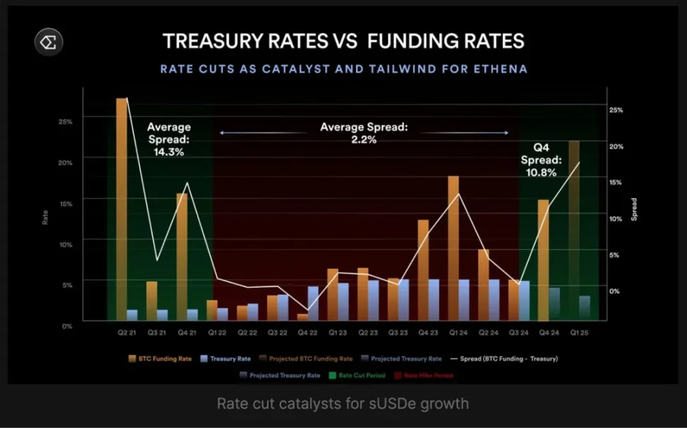 この機関投資家による導入モデルはUSDCやUSDTに似ていますが、はるかに短期間で実現します。従来のステーブルコインが機関投資家との関係構築や規制遵守の枠組みを構築するには何年もかかりましたが、Ethenaはわずか数ヶ月でこれを達成しました。これは、成熟した規制環境と高い利回りの魅力によって推進されました。