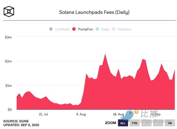 2025年8月、Pump.funは累計売上高8億ドル、市場シェア70%超を記録し、引き続き市場をリードしました。同プラットフォームは「ミームカジノ」というレッテルに留まらず、ライブストリーミング、CCM(クリエイターキャピタルマーケット)、Ascendダイナミックフィーメカニズムといった一連の施策を通じて、その優位性をさらに強化しました。