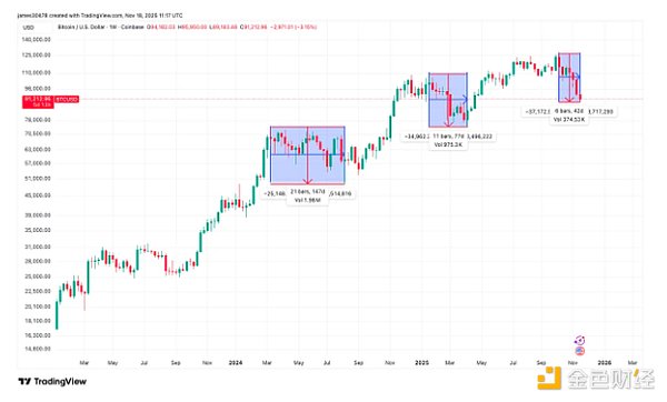 ジェームズ・ヴァン・ストラテン氏は、ビットコインの現在のサイクルにおいて、これは「3回目の30%の下落」だと説明した。下落のたびに、ピークから底値までの時間が短くなり、市場パニックの拡大が加速している。