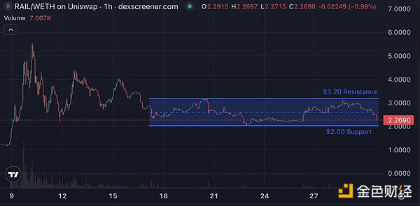 (2) コアロジックは変わっていません。市場が変化しただけです。10月10日の清算イベント後、RAILは約5.00ドルから2.20ドルまで急落しました。それ以降、その価格変動はBTCの横ばいの取引パターンを一貫して反映しています。