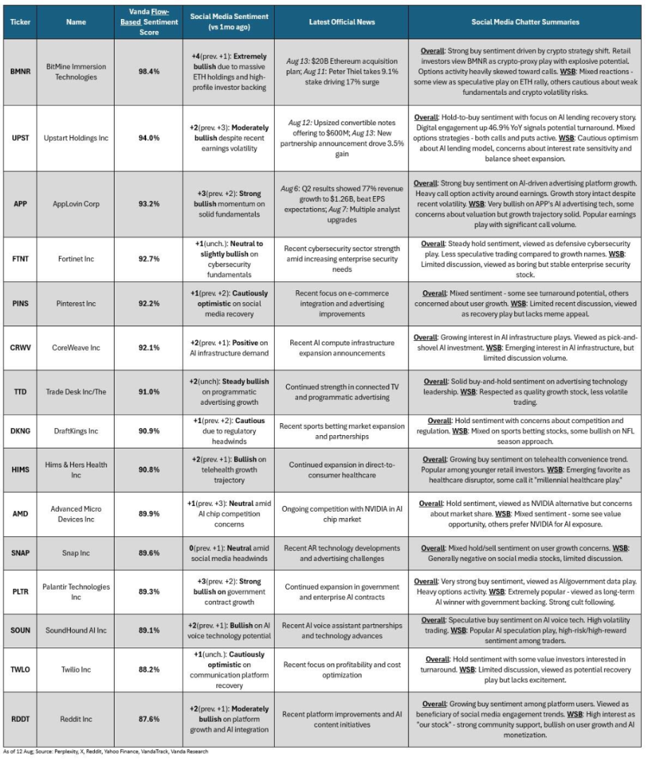 Vanda Researchの分析によると、BMNRは韓国で人気が高いだけでなく、米国の投資家からも最も高い注目を集めています。投資家センチメントスコアは98.4%で、リストに掲載されている他のすべての銘柄を上回りました。これは、高ボラティリティ・高モメンタム資産への選好が、世界中の個人投資家に共通していることを示唆しています。