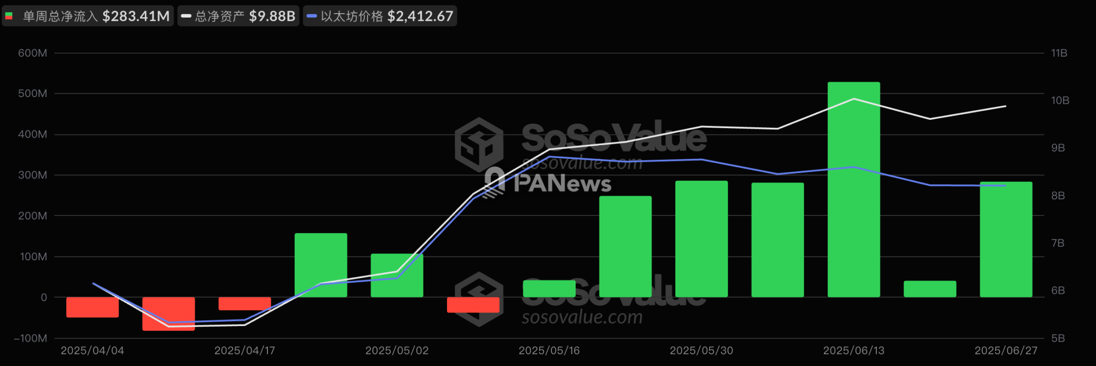 そのうち、ブラックロックのETHAは引き続き主な資金流入先であり、期間中に約14億5,000万ドルの純流入と株価の上昇率は11.5%でした。フィデリティのFETHは2億5,000万ドル以上の純流入と株価の上昇率は34.6%でした。グレイスケールのミニETHは1億6,000万ドル以上の純流入と株価の上昇率は34.7%でした。ビットワイズのETHWは、期間中に約3,327万ドルの純流入と株価の上昇率は36.37%でした。ヴァンエックのETHVは581万ドルの流入と株価の上昇率は34.76%でした。グレイスケールETHEは、1四半期で1億3,000万ドル以上の純流出と株価の上昇率は34.26%でした。フランクリンのEZETは、純流入額が約632万米ドルで、株価が約34.61%上昇しました。21SharesのCETHは、純流入額が814万米ドルで、株価が34.63%上昇しました。インベスコのQETHは、純流入額が337万米ドルで、株価が約33.6%上昇しました。