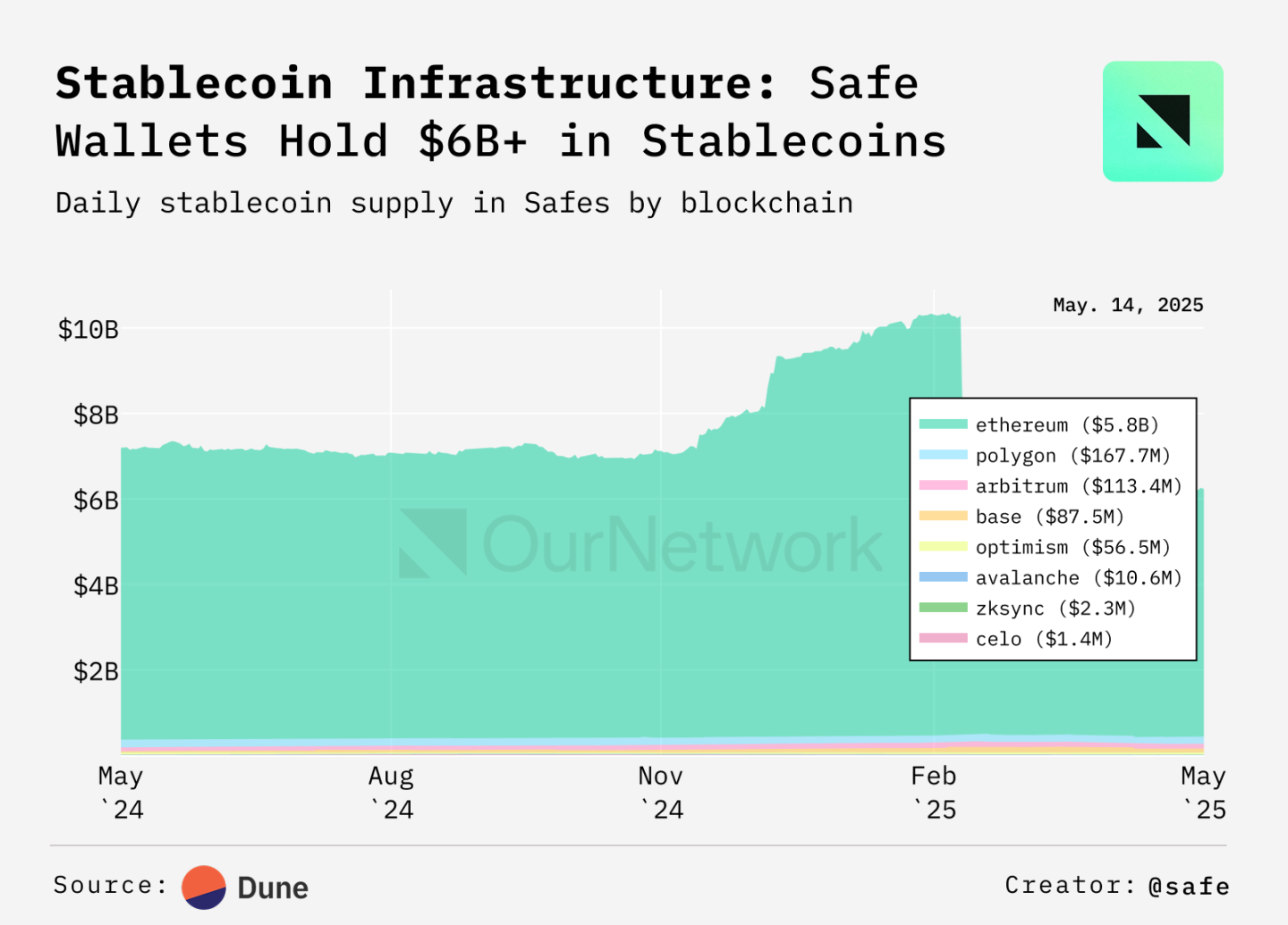 Ethereum エコシステムでは、Safe が最も広く採用されているスマート アカウントです。現在、スマートアカウントには約62億ドル相当のステーブルコインが保管されており、2024年以降、17のブロックチェーンで3,030億ドル以上のステーブルコイン取引を処理しています。