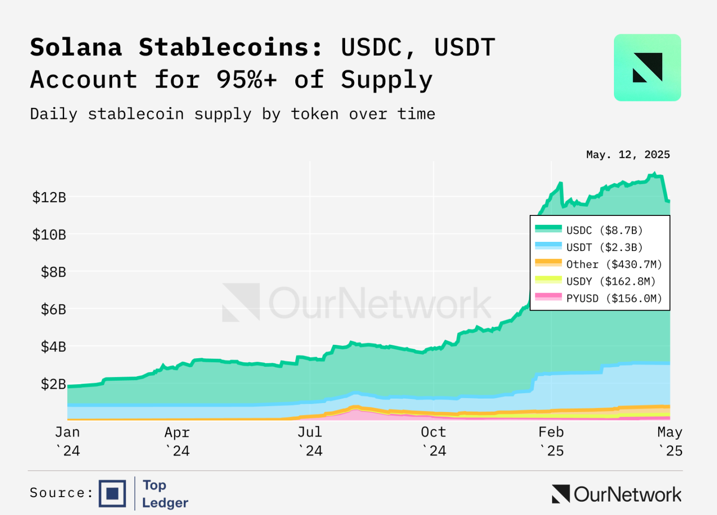 この記事では、時価総額が100億米ドルを超えるもう一つの巨人であるUSDCに焦点を当て、Ethenaのデュアルステーブルコイン製品であるUSDeとUSDtbの最新の開発状況をお伝えします。さらに、OurNetwork のアナリストは、Solana 上のステーブルコインの現在の状況、インフラストラクチャの更新 (アカウントの抽象化は近日中に開始されます)、および USR に関するレポートを発表します。 USR は、時価総額が 2 億 5,000 万ドルを超え、デルタ中立の裏付けメカニズムを備えた新興の USD ペッグ資産です。