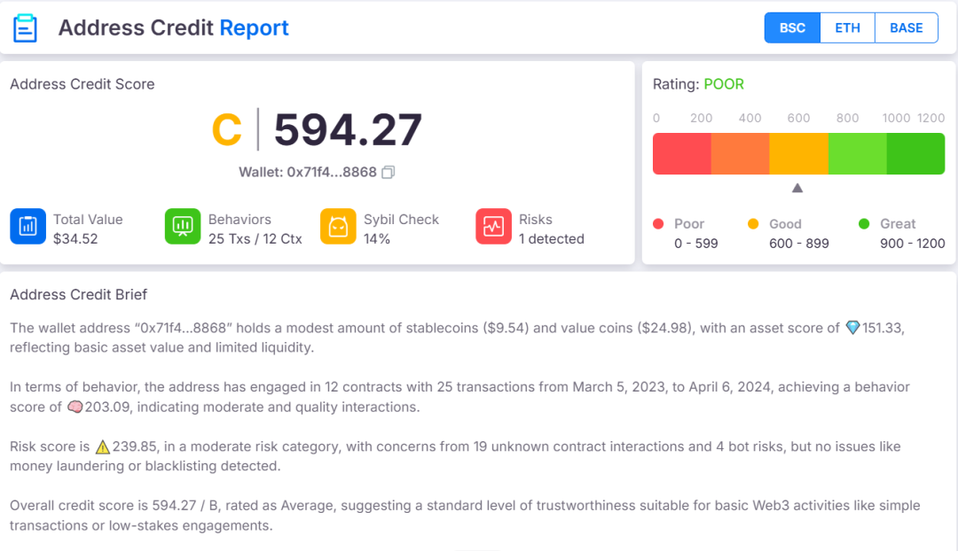 Creditlinkは、マルチチェーンウォレットの資産と取引記録をワンクリックで分析し、リスクの高いアドレスやシビル行為をマークすることもできます。以前は多くのツールを試しましたが、基本的に残高を確認するだけだったので、最初はあまり期待していませんでした。しかし、Creditlinkの使用感は私の期待を完全に上回りました。