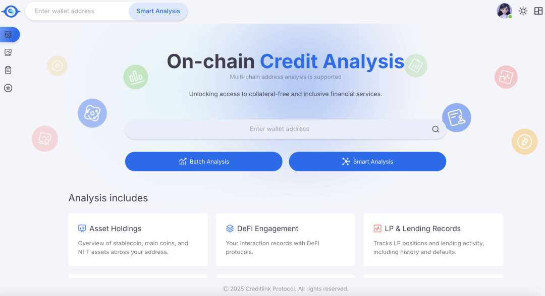 Creditlinkのバッチスクリーニングにより、元々複雑で冗長だったウォレットデータが実用的なインサイトツールに変換され、Web3プロジェクトの関係者とユーザーのデータ駆動型意思決定における効率と精度が大幅に向上します。これは、オンチェーン信用システムとアイデンティティポートレートの構築における重要なコンポーネントです。