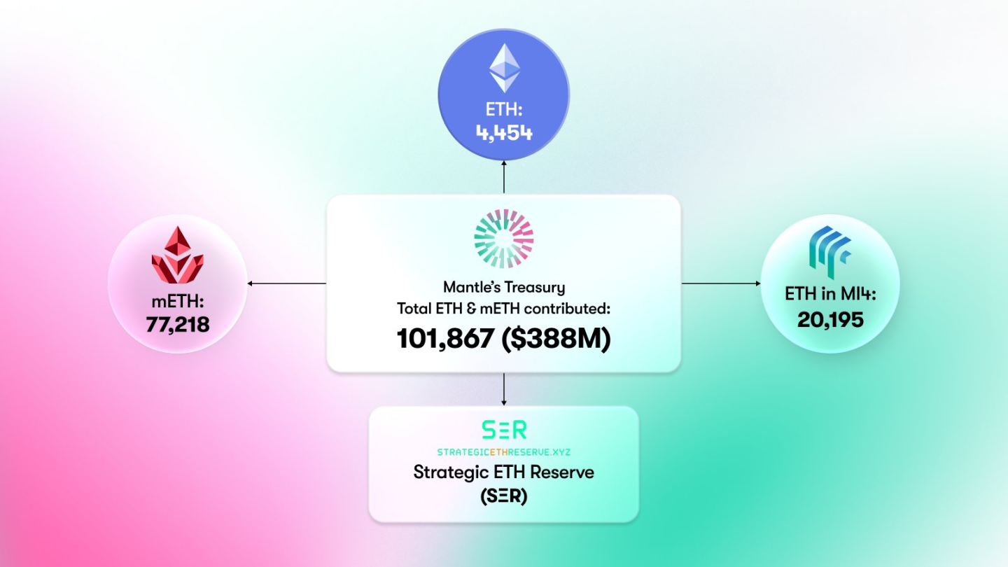 7月29日、Mantleは戦略的ETH準備金に正式に参加し、その財務には101,867 ETH(価値3億9,000万ドル)が保有されている。