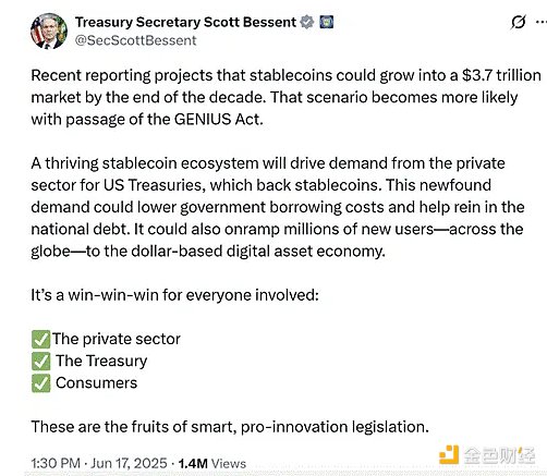 流動性分析:ベッセント氏の新たなお気に入りの「安定通貨」は、国家債務にどれだけの購買力をもたらすのか