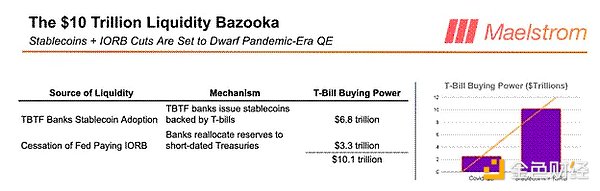 ベッセント米国財務長官が「ステーブルコイン」にこれほど熱心な理由は、ステーブルコインの発行によってTBTF銀行が最大6.8兆ドルの国債購買力を解放できるからだと私は考えています。これらの休眠預金は、不安定な法定通貨金融システムで再利用され、市場を活性化させる可能性があります。次のセクションでは、ステーブルコインの発行がどのように国債購入を促進し、TBTF銀行の収益性を向上させるかについて、私のモデルを説明します。