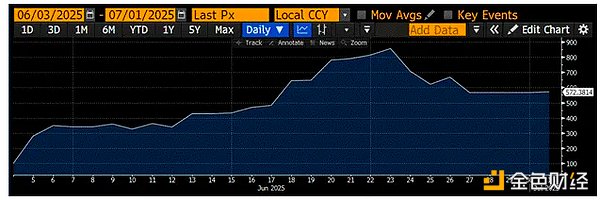 1月1日現在、財務省は引き続き、主に当座預金口座である財務一般口座(TGA)からの資金引き出しによって政府への資金供給を行っています。6月25日時点のTGA残高は3,640億ドルでした。財務省が最新の四半期借換発表で示したガイダンスに基づくと、債務上限が本日引き上げられた場合、TGA残高は債券発行を通じて8,500億ドルに補充されます。これにより、米ドル流動性は4,860億ドル減少することになります。このマイナスショックを緩和できる唯一の主要な米ドル流動性項目は、RRP口座(現在4,610億ドル)からの資金流出です。