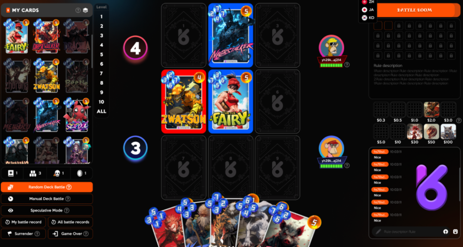 各レルムでは、ANOME特製の3×3 PvPカードバトルで、プレイヤーはNFTカードを使って競い合います。NFTカードのステータスは、所有権を転嫁したり、破壊後に報酬獲得のきっかけとなる可能性があります。たとえ敗北したとしても、プレイヤーはロスマイニングを通じて収入を得ることができ、継続的な参加を促進します。