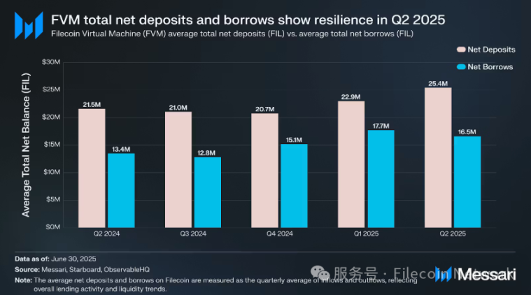 2025年第2四半期、Filecoinへの総流入額(純預金額)は6,700万ドルで、第1四半期の8,800万ドルから23%減少しました。同期間の総流出額と貸出額は、6,800万ドルから4,300万ドルへと36%減少しました。