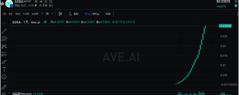 実際のデータによると、12月14日のLumaの国際ローンチ以来、SORAは合計161,076,068.906トークンをバーンし、総供給量の76.7%を占めています。現在、流通しているトークンは約48,923,931.094トークン(23.3%)にとどまり、デフレが続いています。それに伴い、SORAの価格は同期間に約0.00025ドルから0.03ドルに上昇し、累計で約120倍に増加しました。上昇傾向は続いています。