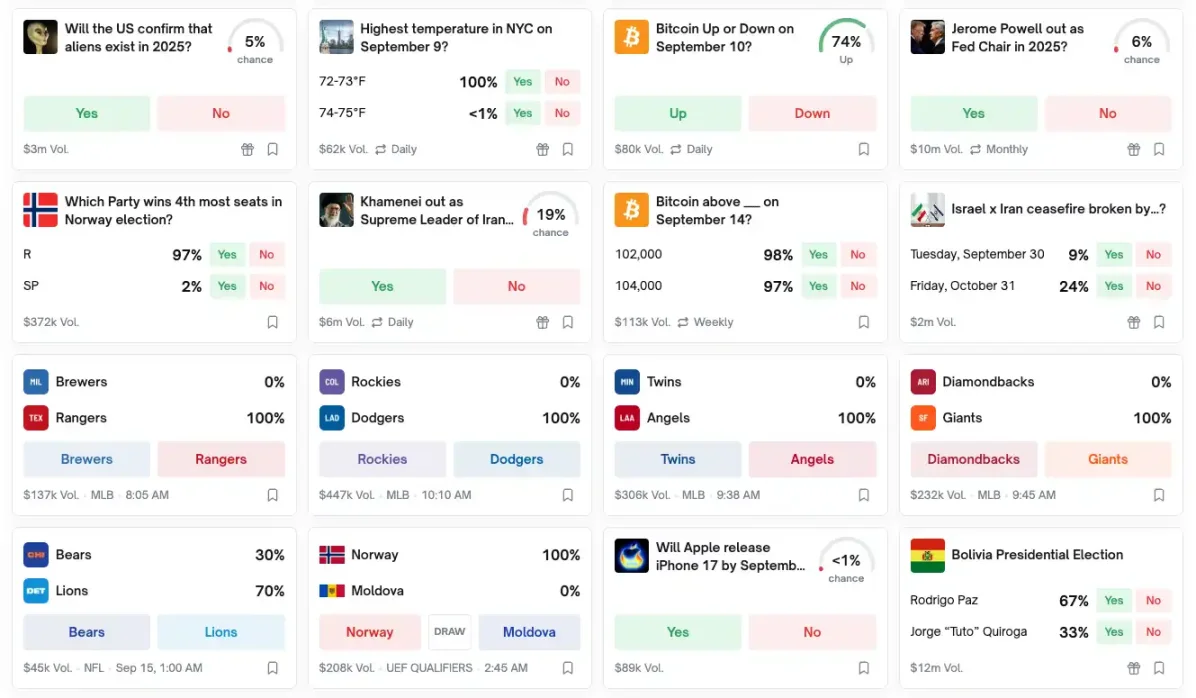 一見ばかげた話題の多くにもプラットフォーム上で対応するマーケットが用意されており、ミーム文化を予測取引に効果的に統合しています。ユーザーは人気のミームや有名人の話題などに賭けることができ、このエンターテイメント性の高い参加がよりアクセスしやすく、より魅力的になっています。