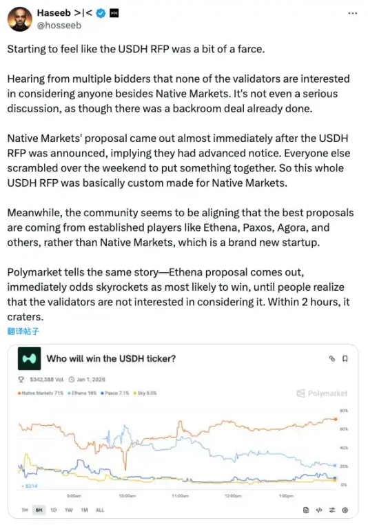 ドラゴンフライのパートナーであるハッセブ氏は、USDHに関する議論の中でポリマーケットの予測を引用した。