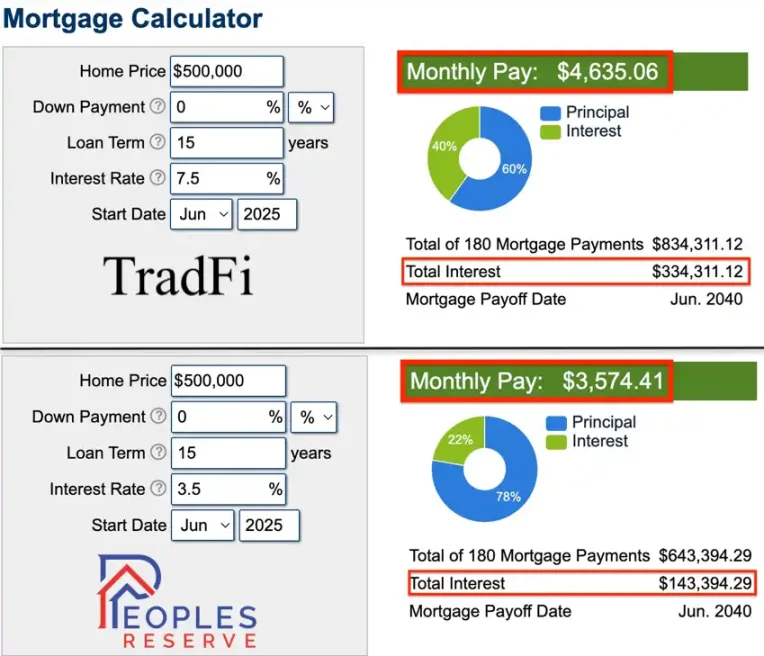 ミロ・クレジットのような長年運営されている民間金融機関は、現在、LTV50%程度で年利9~10%のビットコインローンを提供しています。一方、ピープルズ・リザーブのようなBTCエコシステムネイティブローンプラットフォームは、年利を3.5%(LTV33%の場合)まで引き下げています。このように計算すると、50万ドルの15年住宅ローンを基準にすると、毎月約1,000ドルの節約となり、総利息は19万ドル削減されます。
