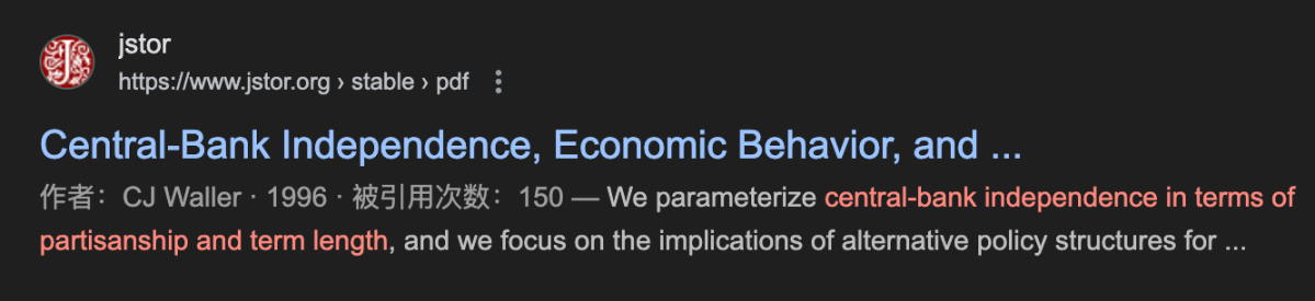 こうした研究でテレビで活躍する経済学者になれるわけではないことは言うまでもありませんが、重要な局面では役に立つかもしれません。1996年、ウォーラーは「中央銀行の独立性、経済行動、そして最適な任期」と題する論文を共同執筆しました。
