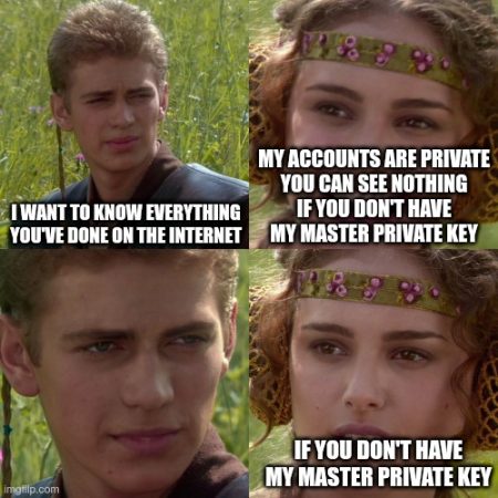 シークレットバリューを開示しなくても、アカウント間の公開接続を誰も見ることはできませんが、もし誰かが開示を強制したらどうなるでしょうか?政府があなたのすべてのアクティビティを把握できるように、シークレットバリューの開示を強制する可能性があります。これは空約束ではありません。米国政府はビザ申請者にソーシャルメディアアカウントの開示を義務付け始めました。さらに、雇用主は完全な公開プロフィールの開示を雇用条件とすることも容易です。個々のアプリでさえ、技術的には、ユーザーがサインアップする前に他のアプリで自分の身元を明らかにすることを要求する場合があります(これはアプリにログインする際にデフォルトで行われます)。