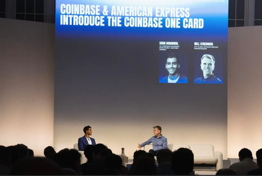 2025 年 6 月、Shan は Coinbase Crypto Summit のステージで American Express の上級副社長である Will Stredwick 氏とともに、新しい Coinbase One クレジットカード (American Express カード) について話し合いました。