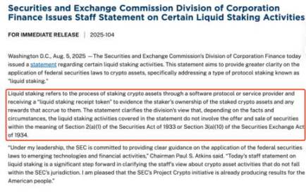 7月30日、SECはブラックロックからETH担保型ETFの申請を受理したと発表しました。8月5日、SECは最新のガイダンスを発行し、特定の種類の流動性担保は証券法の対象外であるとしました。