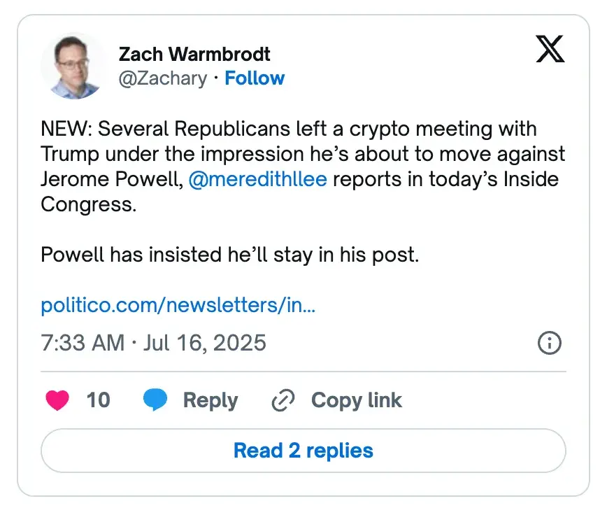 トランプ大統領はジェローム・パウエル議長を解任しないという強い立場を表明されましたが、その考えについてお聞かせください。