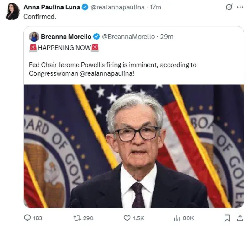 金曜日か土曜日に、アンナ・パウエル氏が解任されるというニュースを報じた。私はデタラメだと思った。彼女は何も分かっていないし、「アメリカを再び偉大に」とばかりに騒いでいるだけだ。しかし、どうやらトランプ氏は下院議員たちに、法案を出してパウエル氏を解任すべきかどうか尋ね回ったようだ。もちろん全員が賛成した。下院にはまともな共和党議員はもういない。