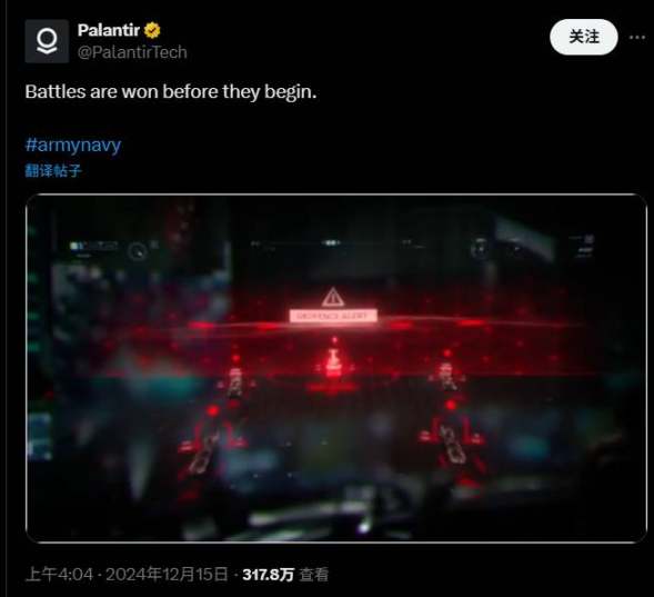 2024年末、パランティアはソーシャルメディアで「戦いはまだ始まっていないが、勝者は決まった」というタイトルの短い広告動画を公開しました。これは単なるマーケティングキャンペーンではなく、宣言のようなものと言えるでしょう。
