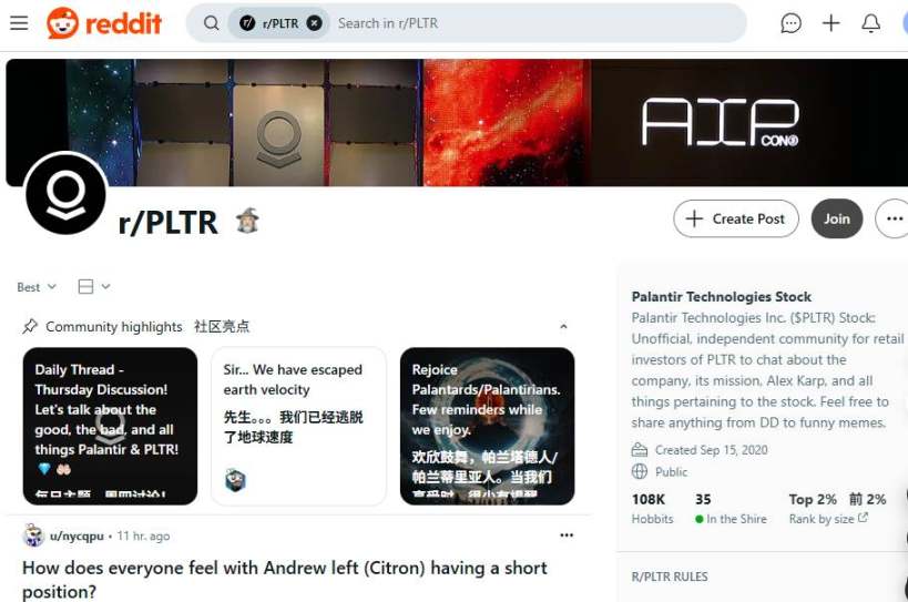 Redditのr/PLTRフォーラムには10万8000人のフォロワーがおり、彼らはあらゆる財務報告書を分析し、CEOのスピーチを解釈し、さらには同社のニックネームまで作っています。彼らにとって、Palantirは単なるソフトウェア企業ではなく、アメリカの運命の延長線上にある存在なのです。