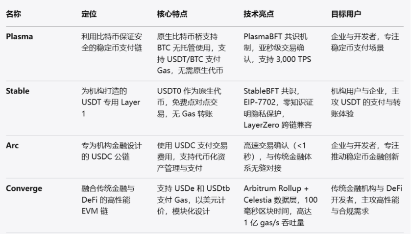 3つの主要ステーブルコインパブリックチェーンの方向性と差別化