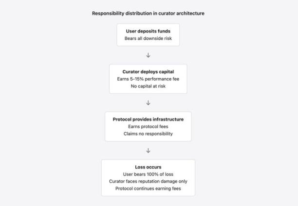 この競争は悪循環を生み出します。保守的なキュレーターは収入が少なく、貯蓄もほとんどありません。一方、急進的なキュレーターは収入が多く、貯蓄も多く、巨額の手数料を稼ぎますが、最終的には破綻に見舞われます。市場は破綻が起こるまで、持続可能な収益と持続不可能なリスクを区別できません。破綻すると、損失はすべての参加者に分配され、管理者は簡単に手放せる評判以外には、実質的に影響を受けません。