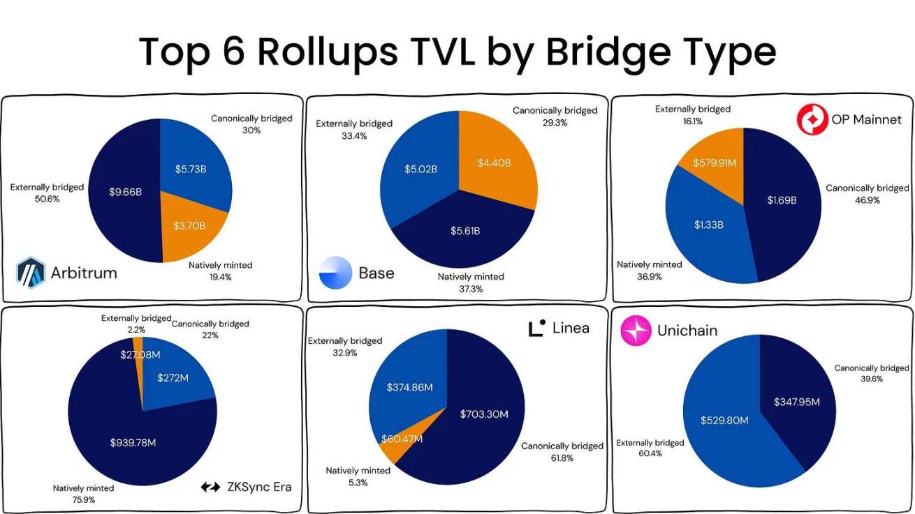 重要なポイント:大規模なロールアップに含まれる資産の大部分は、Ethereumの直接的なセキュリティの対象外です。ユーザーが実際に享受できるセキュリティは、ロールアップ自体ではなく、各ブリッジモデルの背後にある信頼メカニズムに依存します。