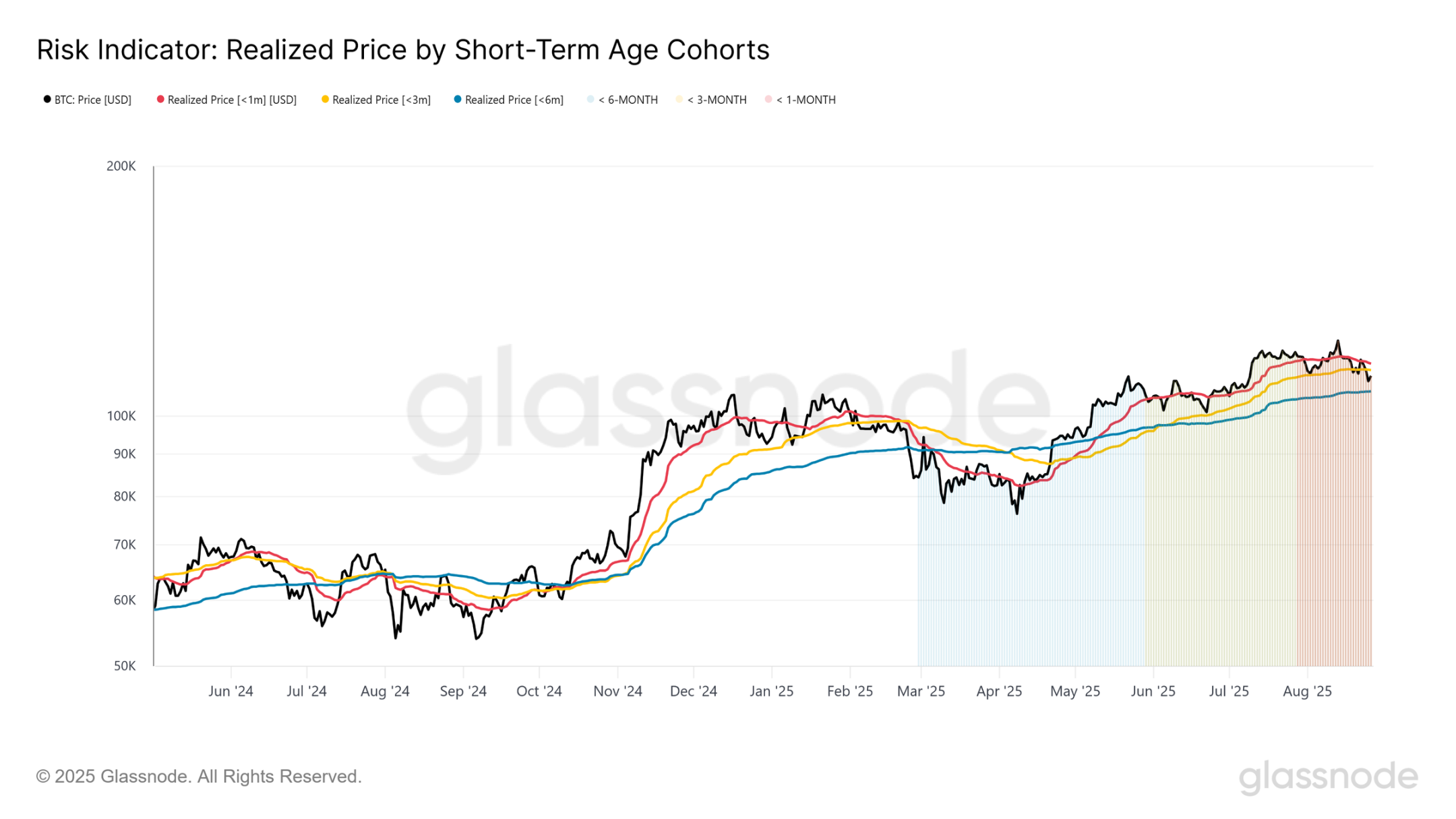 市場のフラストレーションをより正確に測るために、最近の投資家の取得原価率に注目します。この指標は、過去1~6ヶ月間に市場に参入した保有者が支払った平均価格を示しており、心理的なベンチマークとして機能します。市場がこれらの水準を下回って取引されている場合、通常、新規保有者が未実現損失を抱えていることを示しており、これは売り圧力を引き起こす可能性があります。