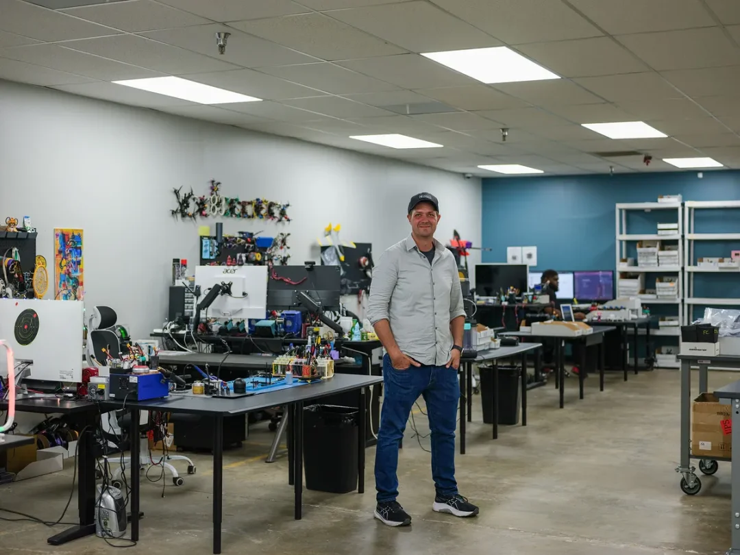 アンユージュアル・マシーンズのオフィスは、オーランドの工業地帯にある倉庫のJルームにあります。記者が6月下旬に訪れた際、同社は採用ラッシュの真っ最中で、新しいデスクやワークステーションがオフィスを埋め尽くし、機材の箱が積み重なっていました。当時、従業員は20人未満で、その大半は小売部門で勤務し、主に中国から輸入したドローンの部品を愛好家に販売していました。しかし、エバンズCEOは従業員数を2倍以上に増やし、部品を自社製造する工場を開設し、産業部門や政府請負部門で新規顧客を獲得する計画を立てていました。