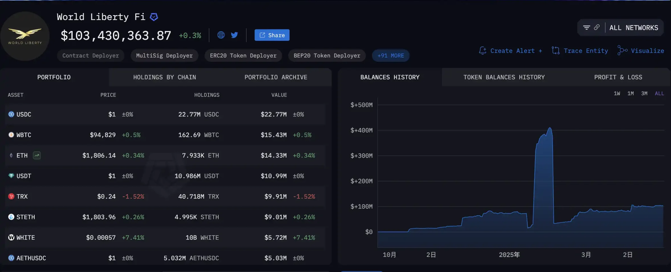 当初の売上高はわずか1,200万ドルにとどまりました。トランプ氏が大統領に選出されて初めて、市場はFOMOの時期を経験し、大量の買いがすぐに売り切れた。トロンの創設者ジャスティン・サンはさらに大きく、3,000万ドルを投資してトロンの最大の外部投資家となった。 WLFIはその後、複数のトークンに投資すると発表した。現在までに、同アドレスの資金は4億ドルから1億ドルに減少している。