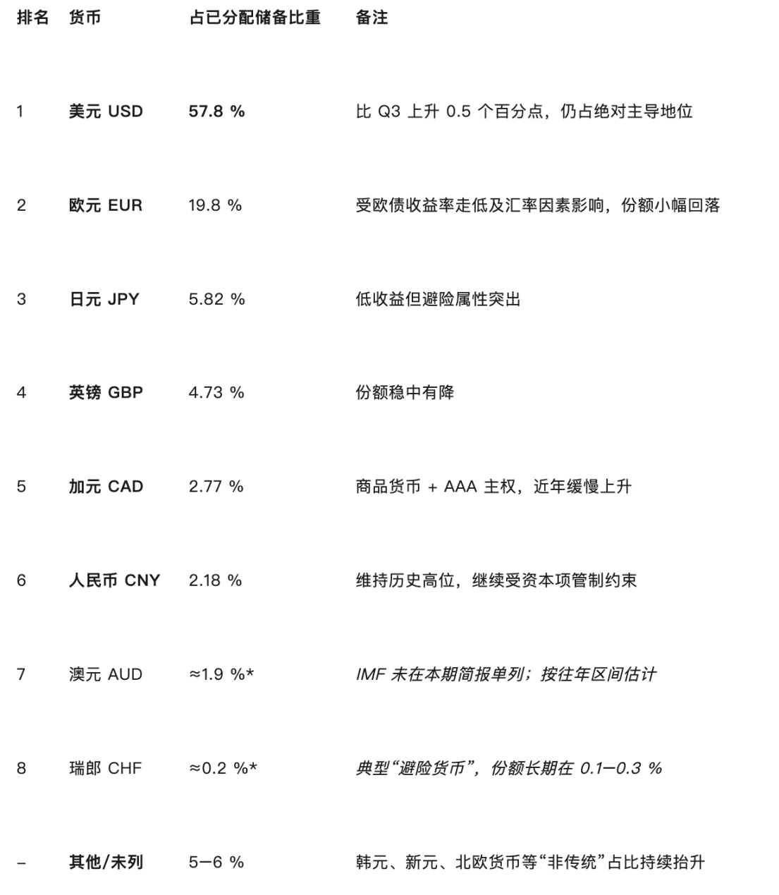 表2:2024年第4四半期の世界の外貨準備高の通貨構成