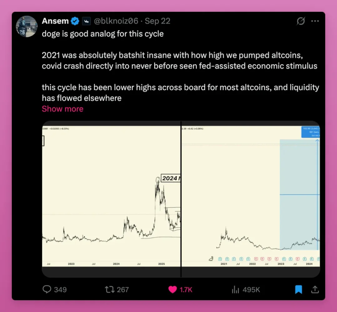 過去には、「流通在庫が少なく、完全希薄化後評価額(FDV)が高い」トークンが非常に求められていましたが、現在では個人投資家は教訓を学び、「価値を創造できる、または少なくとも強い文化的影響力を持つ」トークンを好んでいます。