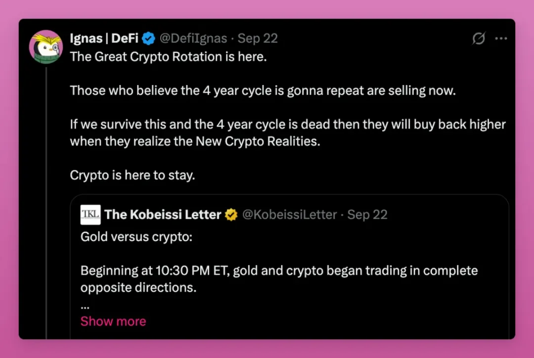 マクロ環境が安定し続ければ、4年サイクルを信じて現在売却している投資家は、最終的にはより高い価格で資産を買い戻さなければならなくなるだろうと私は考えています。