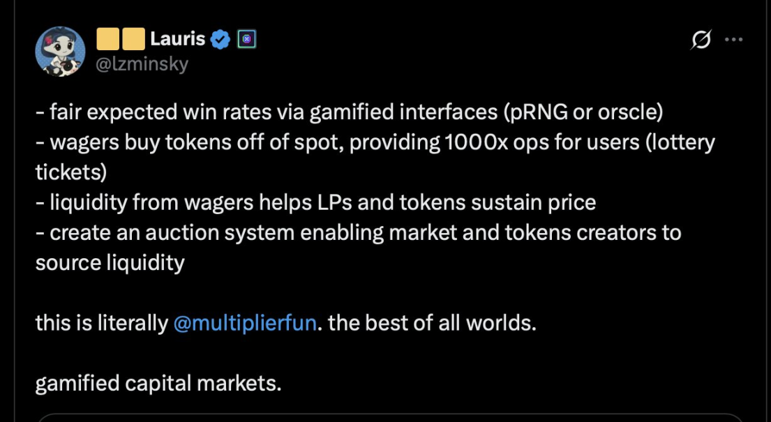 これらのループがトークン化されると、それぞれの賭けは単なる価値の移転ではなく、分配を生み出すものになります。ギャンブルを通じて発行されるトークンは、瞬時に保有者を増やし、流動性を高め、物語性を高めることができます。かつてはスロットマシンの1スピンに限定されていたものが、今では市場に存在感を与えることができるのです。