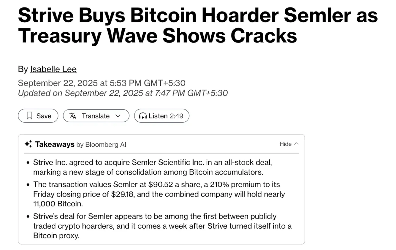 - Striveは現在Semlerが保有する5,048BTCを取得しました。