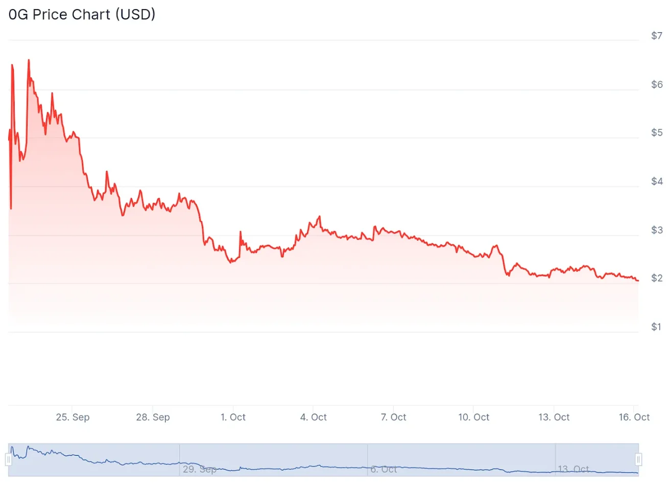 DATについては、誤情報や隠された情報も数多く存在します。例えば、企業は資産への多額の配分を発表することがありますが、それが資産購入なのか、投資家からの現物配分なのか、それともチームがすでに保有している資産なのかを示す情報はありません。2025年9月、医療大麻企業Flora Growthは、0Gトークンの資金庫を構築するために4億100万ドルを調達し、そのうち約2,300万ドルはDeFi Development Corpからの投資であると発表しました。問題は、新規資本がわずか1,370万ドルだったことです。驚くべきことに、その96.5%は既存のトークン保有者からの現物拠出によるもので、新たな購買力はありませんでした。0Gトークンの価格は、取引される前に3ドルに設定されていました。10月16日時点では、トークンは2ドルで取引されていました。