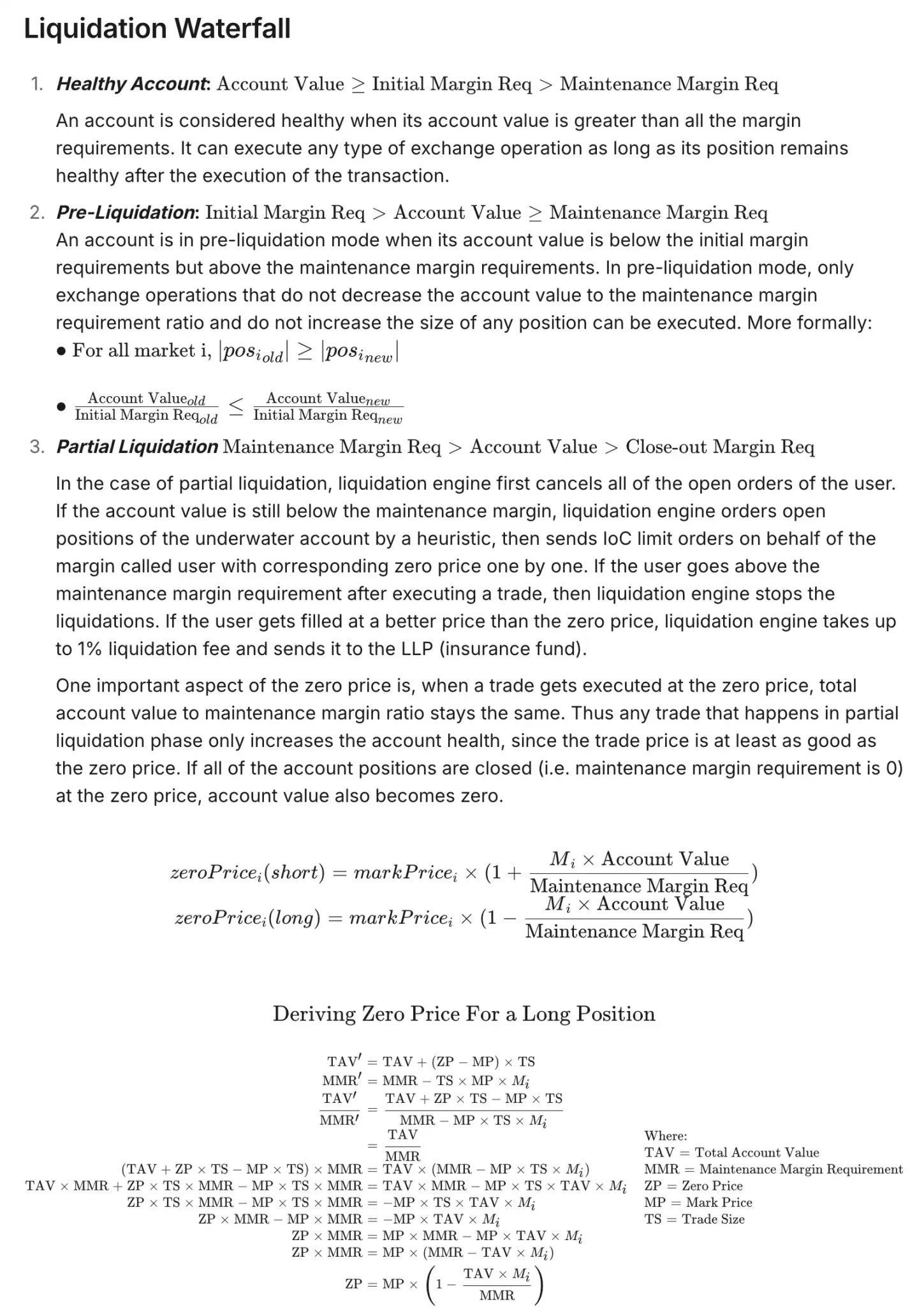 したがって、「軽めの銘柄は急騰する可能性が高い」と単純に言うことはできません。むしろ、リスクを「分散」し、一時的なブックスイープによる価格変動の影響を軽減するために、より慎重にポジションを清算・縮小するべきです。その代償として、取引が「ゼロ」よりも良い価格で成立した場合、保険基金(LLP)に1%以下の清算手数料が課せられます。