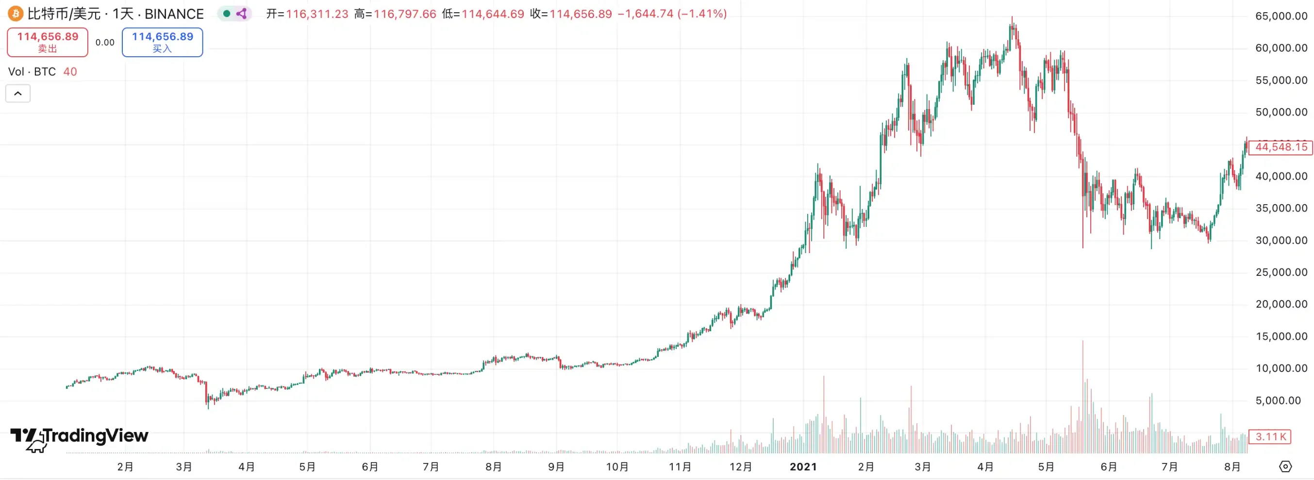 マクロ経済環境について言えば、2020年初頭に新型コロナウイルス感染症(COVID-19)のパンデミックが発生し、米連邦準備制度理事会(FRB)は政策金利を急速にゼロ付近まで引き下げ、前例のない量的緩和(QE)を開始しました。同時に、米国政府は大規模な財政刺激策を打ち出し、住民に直接小切手を配布しました。この金融緩和と財政政策の二重の刺激策は、金融市場の流動性過剰を招き、伝統的資産とリスク資産の両方が同時にインフレを引き起こしました。2020年の米国株のV字回復を受け、ビットコインは年末までに2万ドルの水準を突破し、2021年第1四半期には6万ドルまで急騰し、アルトコインの上昇余地を生み出しました。
