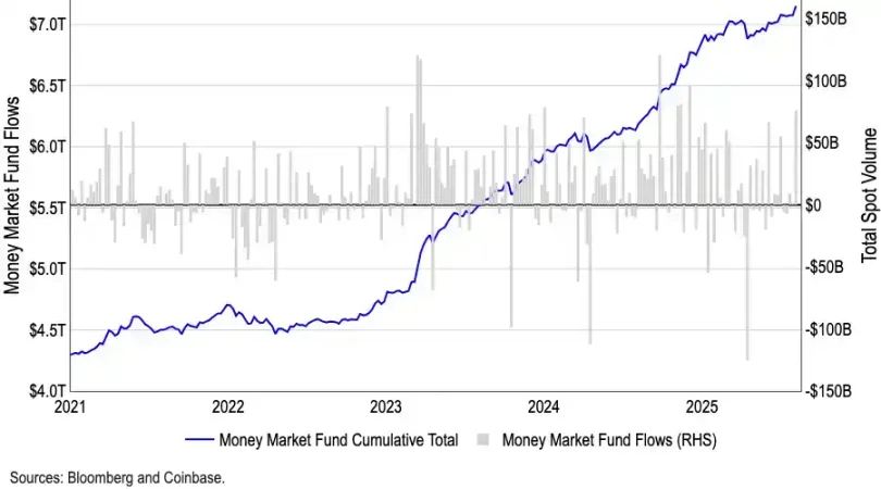 9月の利下げが暗号資産市場の短期的なピークを引き起こすかどうかについては多くの議論があるものの、資本フローの観点から見ると、こうした懸念は誇張されている可能性がある。米国のマネー・マーケット・ファンド(MMF)の残高は過去最高の7.2兆ドルに達し、相当な額の資金が低リスクの金融商品に閉じ込められている。歴史的に、MMFからの資金流出はリスク資産の上昇と正の相関関係にある。利下げが効果を発揮するにつれて、こうしたリターンの魅力は徐々に低下し、暗号資産やその他の高リスク資産への資金流入が増加する可能性がある。この前例のない資金の山は、今回の強気相場における最も強力な火種となり得ると言えるだろう。