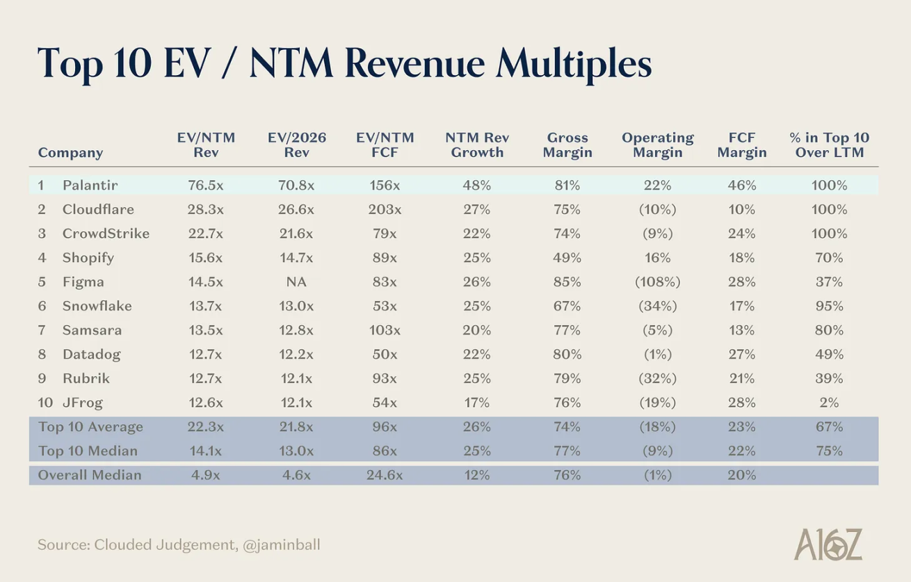 しかし、「パランティア化」が一般的な手法として広く採用されるかどうかは極めて疑問です。パランティアはまさに「カテゴリー・オブ・ワン」です。株価の推移を見れば一目瞭然です。表面的な部分を模倣するだけの企業の多くは、最終的には高額なサービス企業となり、複合的な競争優位性も築かずにソフトウェアの時価総額を何倍にも膨らませることになります。これは、あらゆるスタートアップが「プラットフォーム」を標榜しながらも、真のプラットフォーム企業は構築が困難だったため極めて稀だった2010年代を彷彿とさせます。
