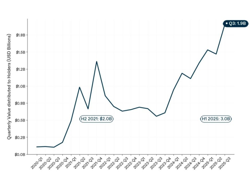 まだ信じられないという方のために、1kxの調査によると、トークン保有者への価値流入は暗号資産史上最高を記録しているそうです。以下のデータをご覧ください。