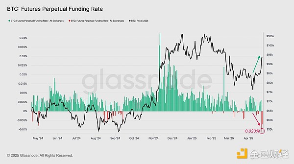 先物未決済建玉は15.6%増加した。しかし、市場が上昇したにもかかわらず、資金調達金利はマイナスに転じ、空売り金利の上昇を示唆した。