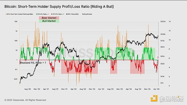 この構造は非常に重要です。以前の弱気市場では、STH-P/L 比率は 1 を大きく下回る水準で取引されており、この水準が抵抗の上限として機能していたからです。指標が1.0を下回って再テストするたびに、投資家がポジションを解消し、勢いを弱め始めるため、ローカルトップの形成と相関する傾向があります。