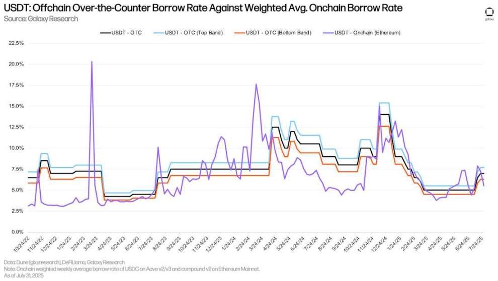 USDT: OTC借入金利と加重平均オンチェーン借入金利